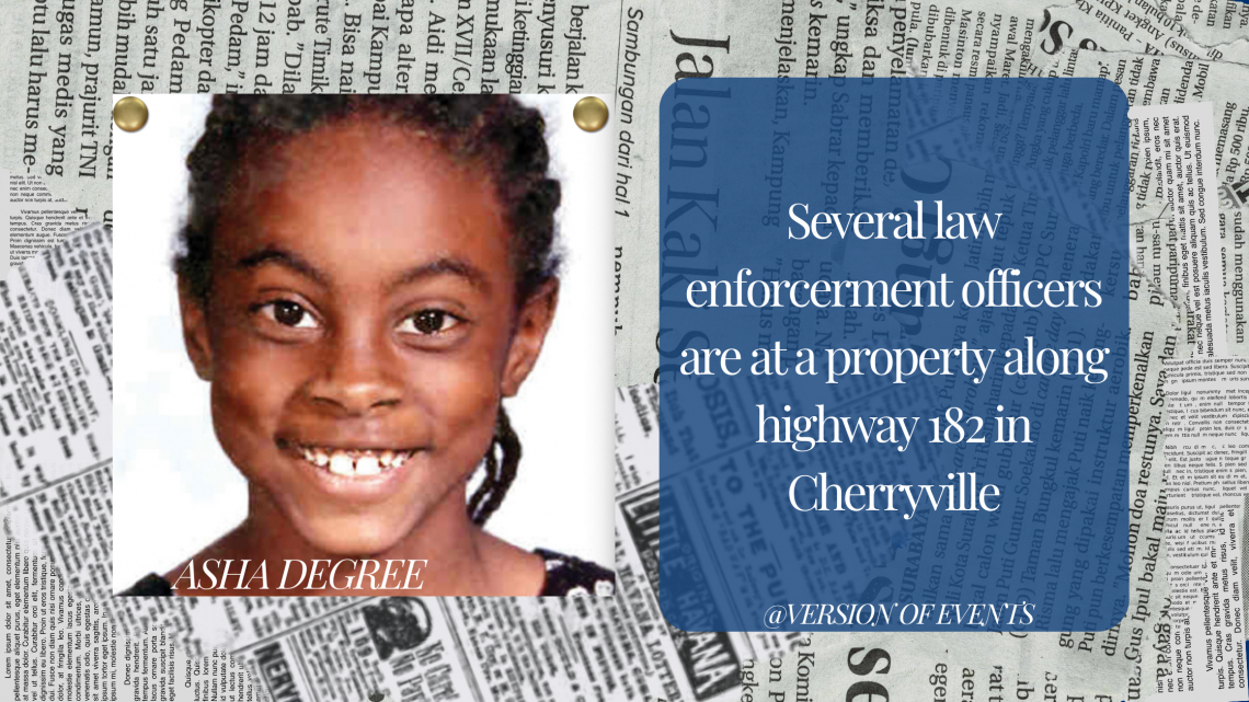 BREAKING NEWS: – NEW SEARCH IN ASHA DEGREE CASE The investigation into the case of missing Asha Degree – “Shelby’s Sweetheart” – took another turn today as law enforcement began searching the abandoned North Brook School at the intersection of Highway 182 and 274 in Cherryville, North Carolina. Local reports indicate a presence of around 30 officers, and photographs show an excavator on the property. The property was owned by segregationist horse-torturer and suspect Roy Dedmon and his wife Connie at the time Asha went missing in February 2000. They sold the property in October 2004, and local law enforcement have clarified that the search is not related to the…
